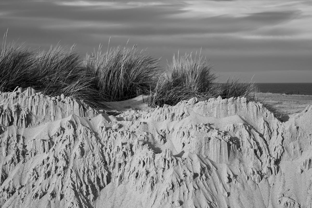 Dune mountain range. Taken after we popped into the lifeboat station (more about that later) for a coffee. I loved the fact that these areas of sand (moved to ensure the lifeboat can get out easily) formed these wonderful sculptured shapes that reminded me of the mountain ranges of Norfolk . ;)